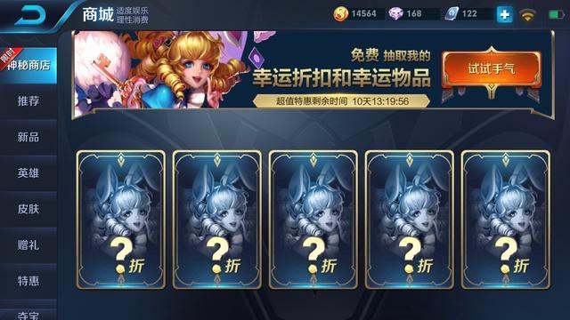 这次神秘商店的上线时间呢应该是和五虎上将版本一起上线的,所以说也就是在最近就会出了,我们进入商城就可以看到很明显的神秘商店啦,届时玩家可以看看自己能抽中几折哦,最低是5折,相当于半价,也是非常不错的了。