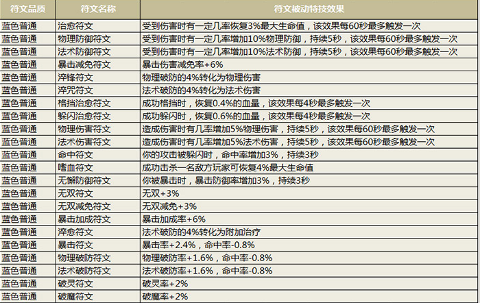 蓝色普通物理防御符文 受到伤害时有一定几率增加10%物理防御,持缋5秒,该效果毎60秒最多触发一次
